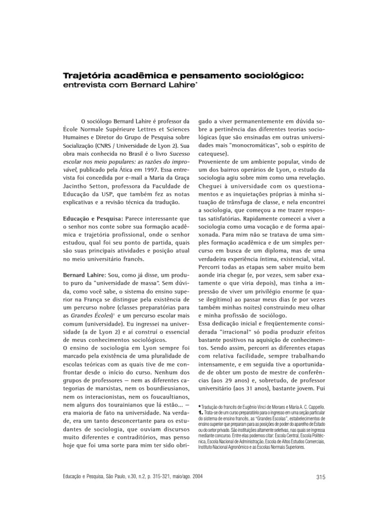 vável, publicado pela Ática em 1997. Essa entre- vista foi concedida por e-mail a Maria da Graça Jacintho Setton, professora da Faculdade de Educação da USP, que também fez as notas explicativas e a revisão técnica da tradução.