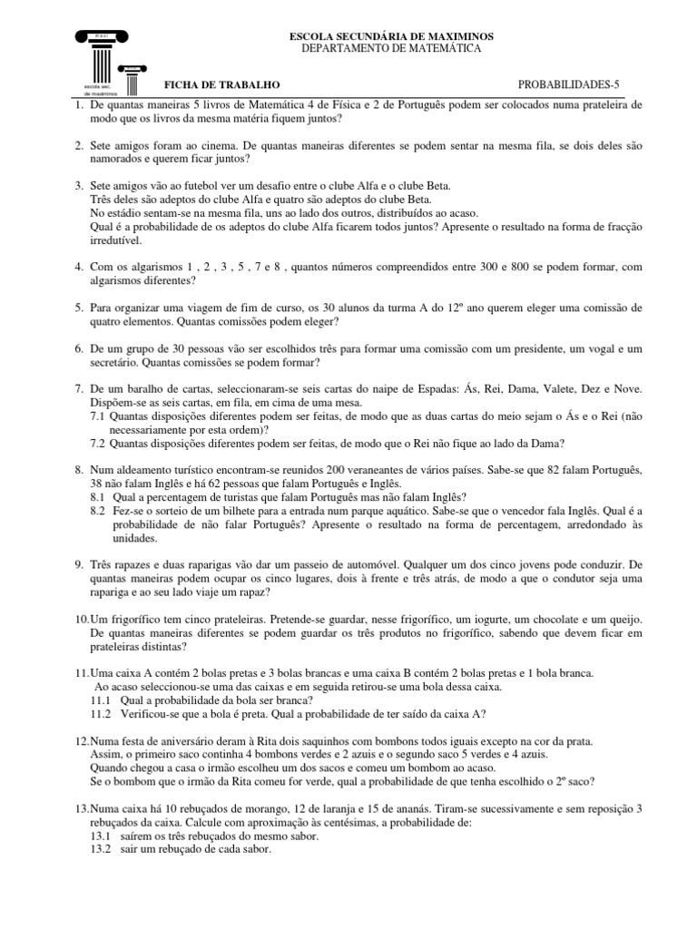 uma delas). Comprados os vinte bilhetes, distribuem-nos ao acaso. Como é evidente, cinco jovens irão ficar sem