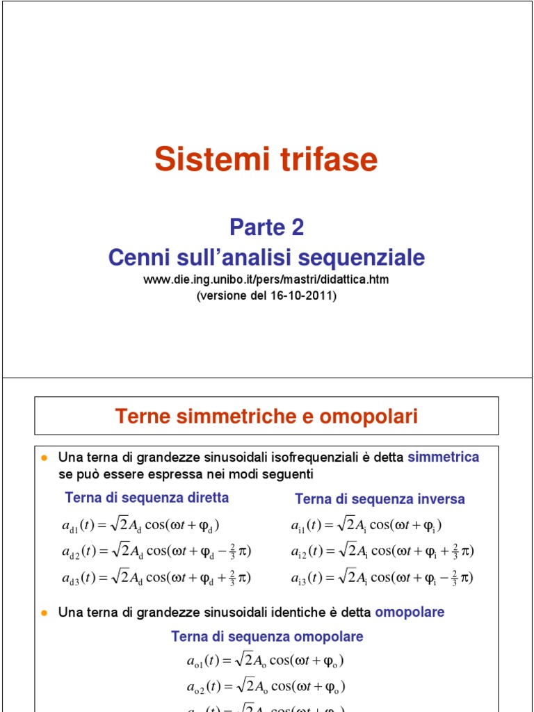 simmetrica diretta ed ha correnti che costituiscono una terna simmetrica