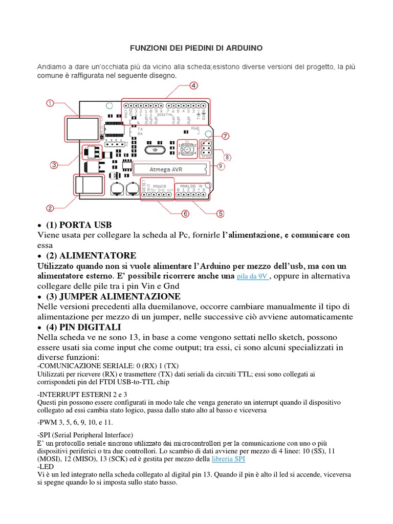 FUNZIONI DEI PIEDINI DI ARDUINO