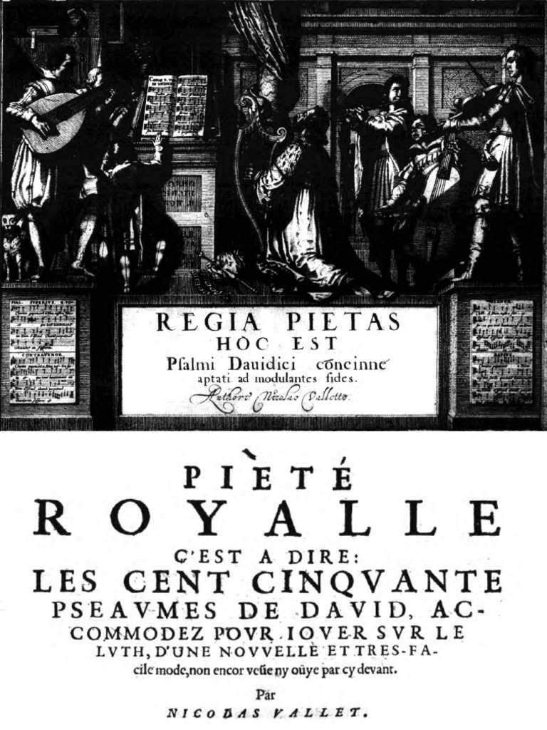 Nicolas Vallet, early 17th century lute music tablature with intabulations of psalmes,