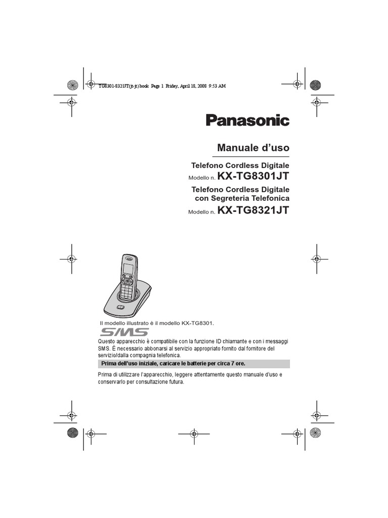 Mem. SMS piena Usare batterie ricaricabili E necessario sottoscriversi allID chiamante *1 KX-TG8321