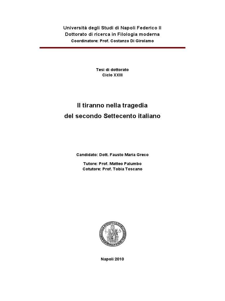 1. La tragedia del Settecento fra continuit e riforma della drammaturgia (p. 3). 2. Il tiranno nelle teorie settecentesche della tragedia (p. 18). 3. Il filone tirannico e anticortigiano nelle tragedie politiche del secondo Settecento italiano (p. 28).