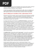 SSID: il nome della rete wireless; DHCP server: il responsabile dell'assegnazione automatica degli indirizzi IP ai dispositivi che vi si collegano. L'indirizzo delle periferiche cambia ad ogni connessione ma resta pur sempre valido perch esso opera in un range prestabilito, escludendo la possibilit d'errore nelle configurazioni generali. Indirizzo IP: fa parte del protocollo standard TCP/IP che s' imposto sulle reti e che permette ad ogni dispositivo d'avere un numero univoco. Gli indirizzi sono formati da 4 gruppi di 8 byte con numeri compresi tra 0 e 255 (un esempio [Link]) nel quale sono presenti intervalli pubblici e privati; ad esso si affianca la sottorete o Subnet Mask (un esempio [Link]) che dev'essere uguale in tutti i dispositivi appartenenti alla stessa rete. Esiste una notevole differenza tra gli indirizzi IP pubblici e privati: se gli indirizzi di un sito internet sono risolvibili da qualsiasi nodo, gli indirizzi privati sono risolvibili solo allinterno della LAN di appartenenza. Nella tabella seguente possibile apprezzare le differenze tra le classi di indirizzi IP privati possibili: Classe A B C Indirizzi IP N sottoreti Da A possibili [Link] [Link] 126 [Link] [Link] 16.384 [Link] [Link] 2.097.152 Indirizzi disponibili per sottorete 16.774.214 65.534 254