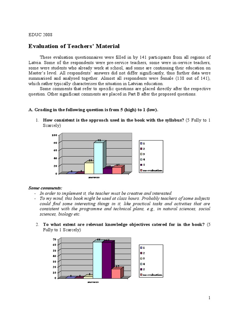 Some comments: 3. To what extent are relevant skills objective catered for in the book? (5 Fully to 1 Scarcely)