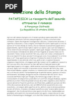 (continua da pag. 6) Da una parte - nell'entropia metaforica - si ha la scomparsa della comunicazione per via della perdita della trascendenza, a vantaggio della sua pragmaticit formato usa-e-getta come insegna la pedagogia pubblicitaria. La lingua non deve durare pi di qualsiasi altra cosa, essa un prodotto e come tale va consumata. Dall'altra - nell'autismo metonimico o minimalista - si ha invece un'attaccamento ossessivo al dettaglio, si ha la scomparsa della comunicazione per via dell'impero del particolare (nessuno rinuncia al proprio gergo e ai propri idioletti). In entrambi i casi si perpetua una forma dissolutoria della soggettivit, per difetto l'uno, difetto verso l'alterit metaforica del linguaggio, per eccesso l'altro, caoticit dei gerghi che si basano sull'inespressivismo malfunzionante del corpo mediatico della lingua. Cos, paradossalmente, nonostante tutta la comunicazione di cui disponiamo, siamo immersi in una specie di grado zero della comunicazione, o di no man's land che rende tutto cos immediatamente accessibile, anche l'accesso stesso come in internet. Questo inespressivismo deterioramento che ratifica il fatto che la lingua questo assoluto del presente deteriorabile della merce, in cui la merce (generalmente di bassa qualit) parla la sua lingua elementare; pi-che-reale; desueta e infine, aliena. La grande afasia nostrana la penetrazione intima, fin nel linguaggio, della merce mediatica che si impone come raccordo, link, connessione dei flussi comunicativi, fino ad internet, rispetto alla quale il soggetto non che un terminale. Per queste gigantesche afasie sociali della comunicazione non ci sono soluzioni, se non quelle alla Breton dei "Vasi comunicanti", cio la reintroduzione o la ripopolazione allegorica e metaforica del linguaggio, che fluidifica, emulsiona, lubrifica, mescola, assorbe e dissolve i flussi statici e stitici dei media. Una soluzione che reincarni il linguaggio nella fluidit dello scambio, che lo liberi dall'inespressivismo mediatico e lo reintroduca nelle soluzioni immaginarie: alla Jarry. marcello faletra filosofo, saggista e redattore di cyberzone