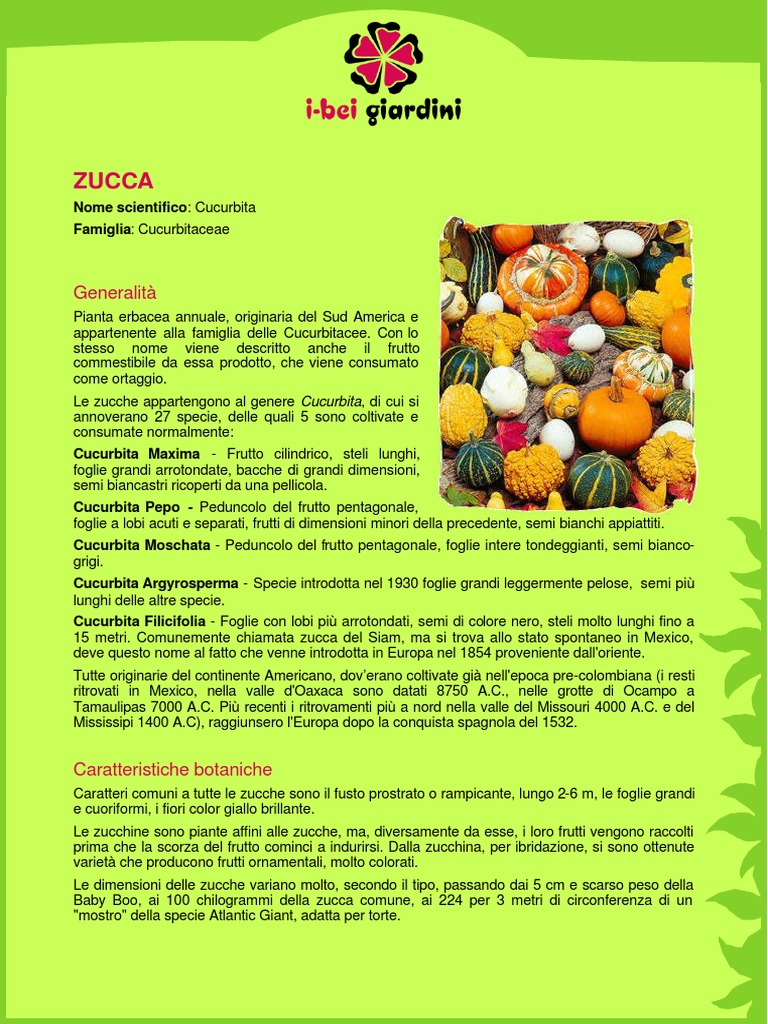 Nome scientifico: Cucurbita Famiglia: Cucurbitaceae