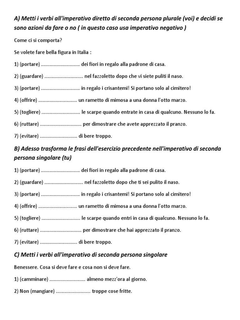 B)Adessotrasformalefrasidell'esercizioprecedentenell'imperativodiseconda