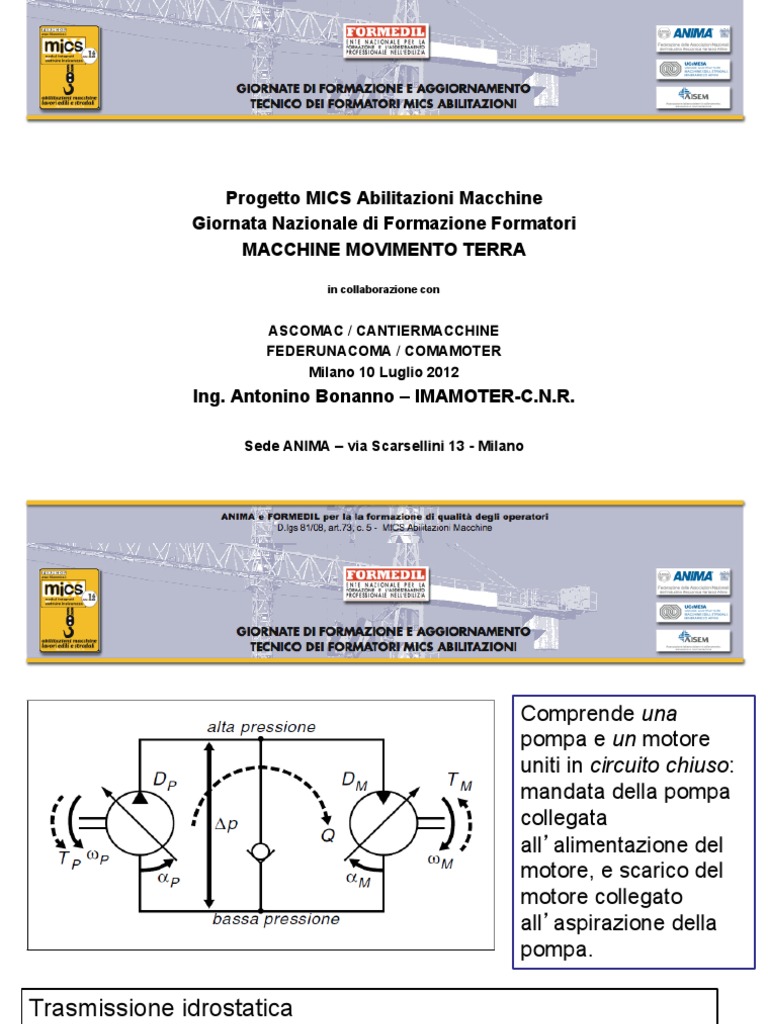 Progetto MICS Abilitazioni Macchine Giornata Nazionale di Formazione Formatori MACCHINE MOVIMENTO TERRA
