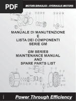 NOTA: se si rendesse necessario lutilizzo di fluidi resistenti alla fiamma o ecologici, prima dellutilizzo si consiglia di contattare la S.A.M. Hydraulik. Temperature e viscosit: La temperatura di esercizio del fluido idraulico, deve essere mantenuta tra i +30C e i +60C. Questa condizione di funzionamento, permetter al fluido idraulico di avere la massima durata. ATTENZIONE: ogni 8C di aumento oltre la temperatura ottimale di esercizio di +60C, la durata della vita utile del fluido idraulico dimezzata. A temperatura di lavoro, la viscosit del fluido idraulico deve essere compresa tra 20 e 75 cSt. La S.A.M. Hydraulik consiglia lutilizzo di un fluido con viscosit di 35 cSt alla temperatura di lavoro effettiva. Filtraggio del Fluido: Per assicurare un buon funzionamento ed una lunga durata dei motori S.A.M. Hydraulik, necessario che il livello di contaminazione dell'olio sia contenuto entro il valore 22/20/17 secondo la norma ISO 4406:1999. A tal fine indispensabile che i filtri nel circuito permettano un livello di filtrazione di 40m assoluti o 25m nominali in circuito aperto e 20m assoluti e 10m nominali in circuito chiuso. LUBRIFICAZIONE DEI RIDUTTORE: ATTENZIONE: i riduttori vengono forniti senza olio, compito del cliente effettuare il riempimento prima della messa in moto della macchina. Per montaggio con asse orizzontale, riempimento fino alla linea mediana. 0.5 l (MB 1010)* 0.29l (CTM 1009)* 0.35l (CTM 1016)* 0.37l (CTM 1022)* Per montaggio con asse verticale, riempimento completo 1 l (MB 1010)* Per CTM 1009 - CTM 1016 - CTM 1022, contattare [Link] * Valori indicativi Per i riduttori si consiglia di utilizzare olii per ingranaggi con additivazione EP, indice di viscosit minimo 95 e viscosit scelta in modo tale che, raggiunta la temperatura normale di funzionamento, essa abbia un valore minimo di 40-60 cst, in relazione alle condizioni di velocit e coppia trasmessa. In caso di grandi variazioni di temperatura, raccomandiamo limpiego di lubrificanti sintetici EP, indice di viscosit minimo 165 e viscosit VG 150 o 220 (ISO 3448). CONTROLLI: Controlli del primo avviamento: Non sottoporre limpianto al carico massimo prima che il fluido idraulico non sia stato filtrato tutto e il livello di contaminazione raccomandato sia stato ottenuto. Prima di effettuare lavviamento del veicolo occorre verificare che tutti i livelli olio siano corretti. Controllare che, dopo il primo avviamento, e dopo il filtraggio di tutto il fluido, il filtro dellolio idraulico sia in condizioni ottimali; si consiglia comunque la sostituzione dopo il collaudo della macchina o dopo le prime 50 ore di funzionamento. Controllare che, loperazione di spurgo del circuito idraulico sia fatta bene; se nel serbatoio del circuito idraulico c presenza di schiuma, significa che c ancora aria nellimpianto; rifare lo spurgo.