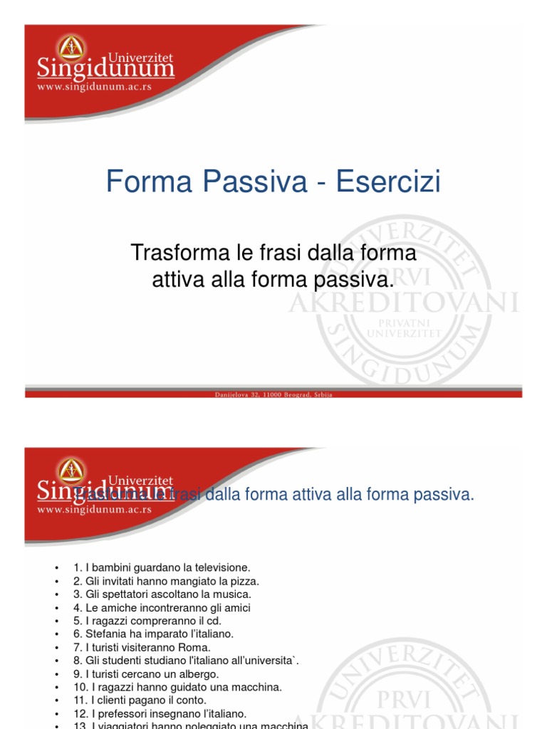 Forma Passiva - Esercizi
