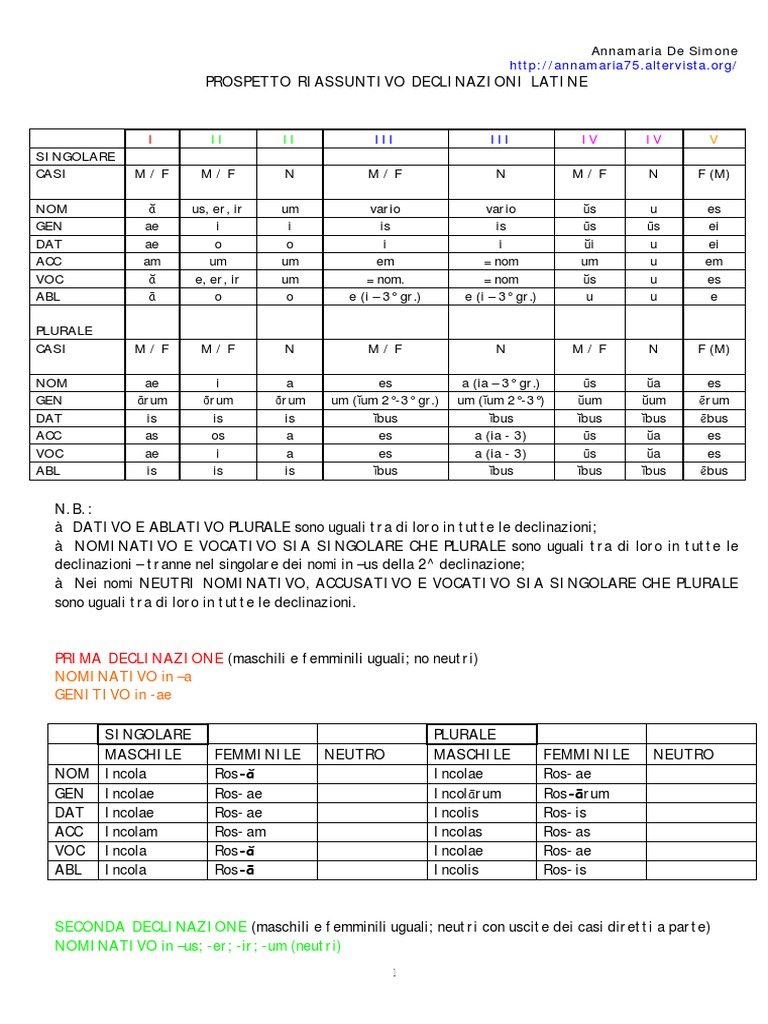 PROSPETTO RIASSUNTIVO DECLINAZIONI LATINE