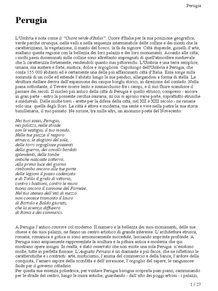 mostrano opere insigni. In realt, stato osservato che non esiste una sola Perugia: nesistono