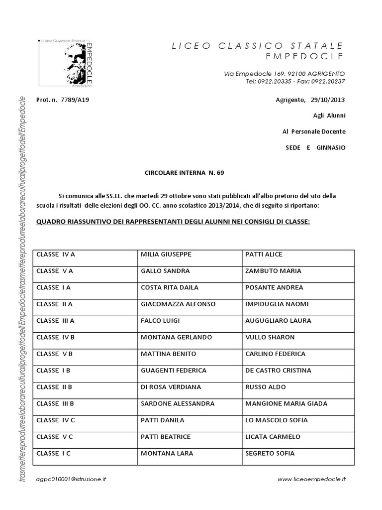 Si comunica alle [Link]. che marted 29 ottobre sono stati pubblicati allalbo pretorio del sito della scuola i risultati delle elezioni degli OO. CC. anno scolastico 2013/2014, che di seguito si riportano: