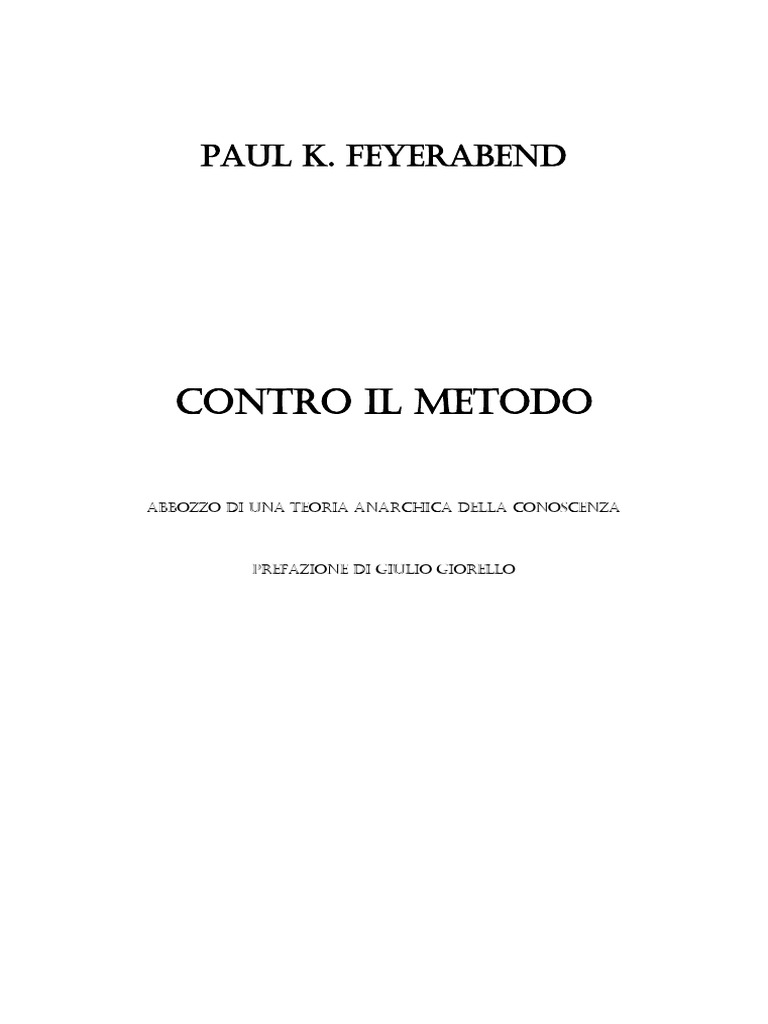 Prefazione di Giulio Giorello Premessa Introduzione La scienza unimpresa essenzialmente anarchica: lanarchismo teorico pi umanitario e pi aperto a incoraggiare il progresso che non le sue alternative fondate sulla legge e sullordine.
