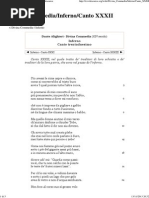 : $i ven4a su #er le tor-i!e on!e un fracasso !*un suon% #ien !i s#avento% #er cui tre"avano a"en!ue le s#on!e% non altri"enti fatto che !*un vento i"#etCoso #er li avversi ar!ori% che fier la selva e san5*alcun rattento li ra"i schianta% a--atte e #orta fori+ !inan5i #olveroso va su#er-o% e fa fu$$ir le fiere e li #astori' Di occhi "i sciolse e !isse? .1r !ri55a il ner-o !el viso su #er 2uella schiu"a antica #er in!i ove 2uel fu""o 8 #i& acer-o.' Co"e le rane innan5i a la ni"ica -iscia #er l*ac2ua si !ile$uan tutte% fin ch*a la terra ciascuna s*a--ica% vi!*io #i& !i "ille ani"e !istrutte fu$$ir cos4 !inan5i a! un ch*al #asso #assava Eti$e con le #iante asciutte' 7al volto ri"ovea 2uell*aere $rasso% "enan!o la sinistra innan5i s#esso+ e sol !i 2uell*an$oscia #area lasso' Fen "*accorsi ch*elli era !a ciel "esso% e volsi"i al "aestro+ e 2uei f, se$no ch*i* stessi 2ueto e! inchinassi a! esso' (hi 2uanto "i #area #ien !i !is!e$no3 Venne a la #orta e con una ver$hetta l*a#erse% che non v*e--e alcun rite$no' .1 cacciati !el ciel% $ente !is#etta.% co"inci) elli in su l*orri-il so$lia% .on!*esta oltracotan5a in voi s*alletta6 /erch, recalcitrate a 2uella vo$lia a cui non #uote il fin "ai esser "o55o% e che #i& volte v* ha cresciuta !o$lia6 Che $iova ne le fata !ar !i co55o6 Cer-ero vostro% se -en vi ricor!a% ne #orta ancor #elato il "ento e *l $o55o.' /oi si rivolse #er la stra!a lor!a% e non f, "otto a noi% "a f, se"-iante !*o"o cui altra cura strin$a e "or!a che 2uella !i colui che li 8 !avante+
