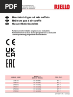 1. 1.1 1.2 2. 2.1 2.2 2.3 3. 3.1 3.2 3.3 3.4 3.5 3.6 3.7 4. 4.1 4.2 4.3 4.4 4.5 4.6 4.7 4.8 4.9 5. 5.1 6. 6.1 6.2 7. 7.1 7.2 DESCRIZIONE DEL BRUCIATORE . . . . . . . . . . . . . . . . . . . . . . . . . . . . . . . . . . . . . . . . . . . . . . Materiale a corredo . . . . . . . . . . . . . . . . . . . . . . . . . . . . . . . . . . . . . . . . . . . . . . . . . . . . . . . . . . . Accessori . . . . . . . . . . . . . . . . . . . . . . . . . . . . . . . . . . . . . . . . . . . . . . . . . . . . . . . . . . . . . . . . . . DATI TECNICI. . . . . . . . . . . . . . . . . . . . . . . . . . . . . . . . . . . . . . . . . . . . . . . . . . . . . . . . . . . . . . . Dati tecnici . . . . . . . . . . . . . . . . . . . . . . . . . . . . . . . . . . . . . . . . . . . . . . . . . . . . . . . . . . . . . . . . . Dimensioni . . . . . . . . . . . . . . . . . . . . . . . . . . . . . . . . . . . . . . . . . . . . . . . . . . . . . . . . . . . . . . . . . Campi di lavoro . . . . . . . . . . . . . . . . . . . . . . . . . . . . . . . . . . . . . . . . . . . . . . . . . . . . . . . . . . . . . . INSTALLAZIONE . . . . . . . . . . . . . . . . . . . . . . . . . . . . . . . . . . . . . . . . . . . . . . . . . . . . . . . . . . . . Posizione di funzionamento . . . . . . . . . . . . . . . . . . . . . . . . . . . . . . . . . . . . . . . . . . . . . . . . . . . . . Fissaggio alla caldaia . . . . . . . . . . . . . . . . . . . . . . . . . . . . . . . . . . . . . . . . . . . . . . . . . . . . . . . . . Posizionamento sonda elettrodo . . . . . . . . . . . . . . . . . . . . . . . . . . . . . . . . . . . . . . . . . . . . . . . . . Rampa gas . . . . . . . . . . . . . . . . . . . . . . . . . . . . . . . . . . . . . . . . . . . . . . . . . . . . . . . . . . . . . . . . . Alimentazione elettrica rampa . . . . . . . . . . . . . . . . . . . . . . . . . . . . . . . . . . . . . . . . . . . . . . . . . . . Linea di alimentazione gas . . . . . . . . . . . . . . . . . . . . . . . . . . . . . . . . . . . . . . . . . . . . . . . . . . . . . Collegamenti elettrici . . . . . . . . . . . . . . . . . . . . . . . . . . . . . . . . . . . . . . . . . . . . . . . . . . . . . . . . . . FUNZIONAMENTO . . . . . . . . . . . . . . . . . . . . . . . . . . . . . . . . . . . . . . . . . . . . . . . . . . . . . . . . . . . Regolazione della combustione . . . . . . . . . . . . . . . . . . . . . . . . . . . . . . . . . . . . . . . . . . . . . . . . . . Regolazione testa di combustione . . . . . . . . . . . . . . . . . . . . . . . . . . . . . . . . . . . . . . . . . . . . . . . . Regolazione serranda aria. . . . . . . . . . . . . . . . . . . . . . . . . . . . . . . . . . . . . . . . . . . . . . . . . . . . . . Controllo della combustione . . . . . . . . . . . . . . . . . . . . . . . . . . . . . . . . . . . . . . . . . . . . . . . . . . . . Pressostato aria . . . . . . . . . . . . . . . . . . . . . . . . . . . . . . . . . . . . . . . . . . . . . . . . . . . . . . . . . . . . . Programma di avviamento . . . . . . . . . . . . . . . . . . . . . . . . . . . . . . . . . . . . . . . . . . . . . . . . . . . . . . Funzione di riciclo . . . . . . . . . . . . . . . . . . . . . . . . . . . . . . . . . . . . . . . . . . . . . . . . . . . . . . . . . . . . Funzione di post-ventilazione . . . . . . . . . . . . . . . . . . . . . . . . . . . . . . . . . . . . . . . . . . . . . . . . . . . Sbocco apparecchiatura . . . . . . . . . . . . . . . . . . . . . . . . . . . . . . . . . . . . . . . . . . . . . . . . . . . . . . . MANUTENZIONE . . . . . . . . . . . . . . . . . . . . . . . . . . . . . . . . . . . . . . . . . . . . . . . . . . . . . . . . . . . . Diagnostica visiva apparecchiatura . . . . . . . . . . . . . . . . . . . . . . . . . . . . . . . . . . . . . . . . . . . . . . . ANOMALIE / RIMEDI . . . . . . . . . . . . . . . . . . . . . . . . . . . . . . . . . . . . . . . . . . . . . . . . . . . . . . . . . Difficolt di avviamento . . . . . . . . . . . . . . . . . . . . . . . . . . . . . . . . . . . . . . . . . . . . . . . . . . . . . . . . Anomalie in funzionamento . . . . . . . . . . . . . . . . . . . . . . . . . . . . . . . . . . . . . . . . . . . . . . . . . . . . . AVVERTENZE E SICUREZZA . . . . . . . . . . . . . . . . . . . . . . . . . . . . . . . . . . . . . . . . . . . . . . . . . . Identificazione bruciatore . . . . . . . . . . . . . . . . . . . . . . . . . . . . . . . . . . . . . . . . . . . . . . . . . . . . . . 2 2 2 3 3 3 4 5 5 6 6 7 7 7 8 9 9 9 10 10 10 11 11 11 11 12 12 13 13 15 15 15