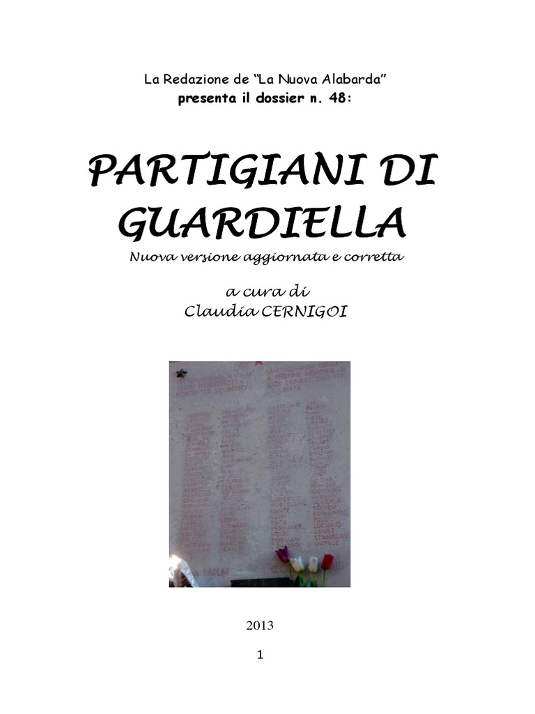 Supplemento al n. 307 23/8/13 de La Nuova Alabarda e la Coda del Diavolo Reg. Trib. di Trieste n. 798 d.d. 16/10/1990 Direttore Responsabile Claudia Cernigoi Sip. C.P. 57 34100 Trieste.