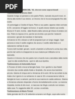 Soranzio, Nicola Alessandro e Guglielmo Cocciotti dichiarano di ricevere dalla Cassa del dott. Collotti L. 1.500 Lire ciascuno, per premio servizio 47. Diamo ora la parola alle testimoni. Andrej Pertot, padre di Danilo Pertot di Longera, stato ucciso dalla banda Collotti presso il bunker il 21/3/43. Da noi dormivano partigiani; alcune volte sono stati pure in dodici, io cucinavo loro pranzi e cene, vicino alla nostra casa cera il bunker dove hanno dormito e nascosto munizioni. Il 18 marzo 1945 i tedeschi hanno circondato la casa, quando ho visto il pericolo ho avvisato il partigiano Paolo di Lubiana, che scapp in fretta, ma purtroppo fu raggiunto dalle pallottole dei mitra degli agenti e dei tedeschi, caduto in una pozza di sangue. Hanno preso mio marito, lo hanno legato e gettato sul camion, e portato a Corgnale, chiuso in una stalla e torturato per fargli dire i nomi dei partigiani che si trovavano nella nostra casa. Lindomani sono venuti a prendere pure me, mi faceva male il cuore a lasciare le figlie in tenera et (4 e 5 anni), sapevo che non sarebbe stato facile nelle mani dei fascisti e tedeschi, mi gettarono sul camion e mi portarono a Corgnale da mio marito; lo presero come un animale e lo gettarono sul camion assieme a me e ci legarono assieme; hanno appeso un cartello con la scritta banditi da ammazzare. Quando siamo arrivati ad Orlek ci hanno fatto scendere dal camion, portati poco lontano e davanti a un plotone desecuzione; l hanno sparato, ma invece di tirare a noi hanno sparato in alto per fare credere agli abitanti che ci avevano ammazzato. Poi ci hanno messo di nuovo sul camion e portati a Sesana dove abbiamo passato unaltra odissea con torture. Di notte si sentivano aerei partigiani che mitragliavano attorno la caserma. Il giorno successivo ci hanno lasciati liberi e ci siamo incamminati verso Opicina, abbiamo pensato tutti e due meno male siamo liberi, invece non era vero. Credevano che in quel tratto di strada sarebbe arrivato qualcuno dei partigiani per portarci via, infatti gli agenti sono stati sempre nascosti dietro di noi per arrestarli. Quando mancava poco ad Opicina hanno visto che non era successo quello che pensavano loro, ci hanno messo unaltra volta sul camion e via in piazza Oberdan al comando tedesco. L abbiamo subito altre torture. Hanno tenuto mio marito Andrea tutta la notte in acqua fredda, lo hanno impiccato per le mani dietro la schiena fino a che non svenuto, poi lo hanno minacciato che se non parlava gli tagliavano la gola facendogli il segno con la baionetta. Ha perso sangue, ma anche