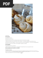 20 gr di zucchero 100 gr di latte 100 gr di burro a temperatura ambiente 12 gr di sale Per spennellare: 1 tuorlo a temperatura ambiente 2 cucchiai di latte a temperatura ambiente Consigli: per una perf etta riuscita dal Pan Brioche necessario che tutti gli ingredienti: burro, uovo , lievito siano a temperatura ambiente. Note: Chi volesse procedere con l'impastatrice o con la planetaria, pu f arlo tranquillamente, saltando quindi il passaggio di Impastare il Pan Brioche a mano e lasciando lavorare la planetaria a velocit bassa per almeno 10' f ino a quando l'impasto non si stacca perf ettamente dalle pareti, avendo cura di inserire gli ingredienti cos come elencati nel procedimento a mano. Procedimento: In una ciotola disponete le f arine con lo zucchero: