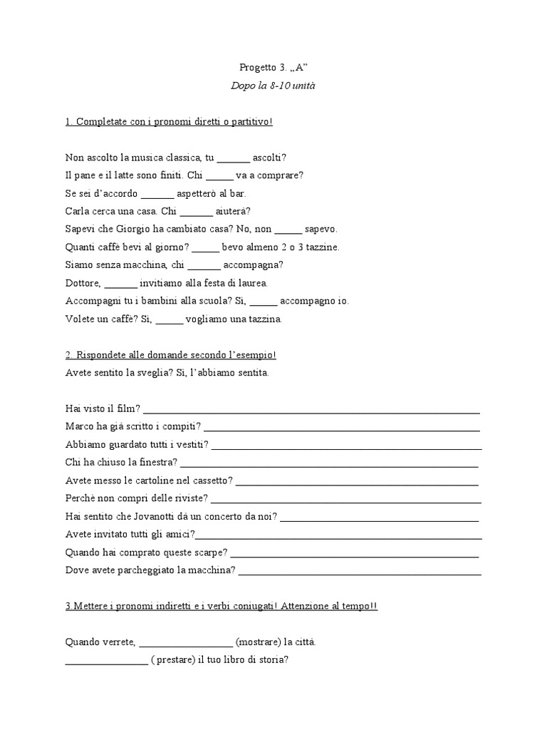 [Link] i pronomi indiretti e i verbi coniugati! Attenzione al tempo!!