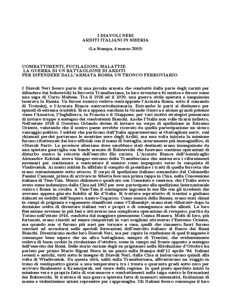 I DIAVOLI NERI ARDITI ITALIANI IN SIBERIA (La Stampa, 4 marzo 2005)