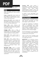 gli stessi. Se, dopo avere ridotto a zero lammontare dei PA, rimangono ancora dei punti di danno da applicare, questi vengono trasferiti sui punti ferita della zona colpita. Questo effetto pu essere usato anche contro larmatura naturale di alcune creature, di fatto spaccando la loro chitina o aprendo squarci tra le scaglie della loro pelle. Stordire zona (solo con armi stordenti): Armi come mazze, martelli e simili possono intorpidire temporaneamente la zona colpita. Il difensore deve effettuare una prova contrapposta di robustezza contro il risultato dellattaccante. Se fallisce, non pu utilizzare larto colpito, barcolla senza fiato se raggiunto al torace o alladdome (pu solo difendersi), o sviene (se colpito alla testa). Queste condizioni perdurano per un numero di azioni di combattimento pari allammontare dei danni che hanno penetrato larmatura. Se i danni non penetrano larmatura in modo sufficiente, limpatto del colpo non sufficiente per stordire. Trafiggere (solo con armi da affondo): Lance e pugnali possono trafiggere gli avversari. In questo caso lattaccante pu tirare due volte per determinare i danni inflitti. Scegliendo il risultato che preferisce. Se, stando al risultato dei danni, larmatura viene penetrata, lattaccante pu scegliere se lasciare larma nella ferita o estrarla per continuare a utilizzarla. Lasciare larma nella ferita infligge una penalit alle prove dellavversario di -10% per categoria di taglia dellarma (-10% per frecce e pugnali, -20% per armi medie e cos via). Rimuovere unarma conficcata nel corso del combattimento richiede lutilizzo di unazione di combattimento e il superamento di una prova di vigore. In ogni caso ci provoca danni ulteriori alla zona del corpo colpita, pari ai danni normalmente inflitti dallarma ma senza laggiunta del modificatore ai danni. Larmatura non riduce i danni provocati dallestrazione di unarma. Mentre larma conficcata, lattaccante non pu ovviamente utilizzarla per effettuare parate. Urtare avversario: Gli attacchi possono essere usati deliberatamente per far perdere lequilibrio al proprio rivale. Il difensore viene spinto indietro di un metro per ogni cinque danni (o frazione) subiti. Lurto funziona solo su bersagli grandi al massimo fino al doppio della TAG dellattaccante. Il calcolo tiene conto del valore dei danni originariamente inflitti allattaccante, prima di ogni sottrazione dovuta allarmatura, a parate e cos via. Se lurto spinge il difensore contro un ostacolo, deve effettuare una prova impegnativa (-20%) di atletica per non cadere prono. Accecare avversario (solo con successo critico): Il difensore acceca il qualche modo il suo avversario, ad esempio lancia dogli sabbia, un indumento oppure facendogli rimbalzare in faccia la luce del sole con lo scudo. Lattaccante effettua una prova contrapposta di Schivare (o nello stile di combattimento con lo scudo in uso) contro il risultato di parata del difensore. Se fallisce non pu attaccare per 1d3 azioni di combattimento. Afferrare arma (solo con abilit lotta): Come Disarmare avversario ma solo se il difensore utilizza labilit lotta. Se ha successo, il difensore sottrae larma allavversario e la impugna nella sua mano. Bloccare arma (solo con un successo critico): Impedisce allavversario di usare larma o lo scudo bloccato, fintanto che questo non spende unazione di combattimento per liberarla. Ci richiede una prova contrapposta nellabilit di combattimento, il vincitore della quale pu liberare la sua arma o continuare a bloccare quella del rivale. Se lo desidera, il personaggio con larma bloccata pu sostituire vigore alla sua abilit di combattimento. Fintanto che bloccata, unarma non pu essere utilizzata per attaccare n per parare, ed possibile evitare un attacco usando unarma eventualmente impugnata nellaltra mano, cercando di disimpegnarsi (utilizzando labilit schivare), o variando stile di combattimento. Contrattaccare: Il difensore utilizza unazione di combattimento per effettuare immediatamente un attacco con una delle sue armi di difesa o con lo scudo. Deviare colpo: Il difensore devia lattacco in modo che lo colpisca in unaltra zona, fintanto che la stessa alla portata dellattaccante. Il difensore non pu evitare i danni: scegli solamente dove subirli. Divincolarsi: Un personaggio soggetto ad afferrare, bloccare arma o intralciare pu automaticamente liberare se stesso p la sua arma, senza necessit di effettuare alcuna prova. Incrementare parata: la taglia dellarma utilizzata per parare si considera maggiore di una categoria, ai fini dei danni bloccati. Recuperare equilibrio: Un difensore prono, o in una simile condizione di svantaggio, pu tornare in piedi con una capriola o aggrappandosi allavversario. Restare saldo: Lesperienza e lagilit di gambe del difensore gli impediscono di subire gli effetti di una spinta (vedi pagina 87) in conseguenza ai danni subiti. Sovrastare avversario: lavversario non pu attaccare nel corso del suo successivo grado di attacco.