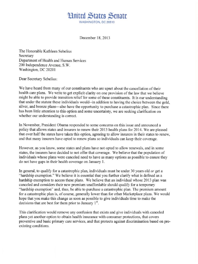 Warner, King, Shaheen, Landrieu, Heitkamp, Kaine Letter To Sec. Sebelius