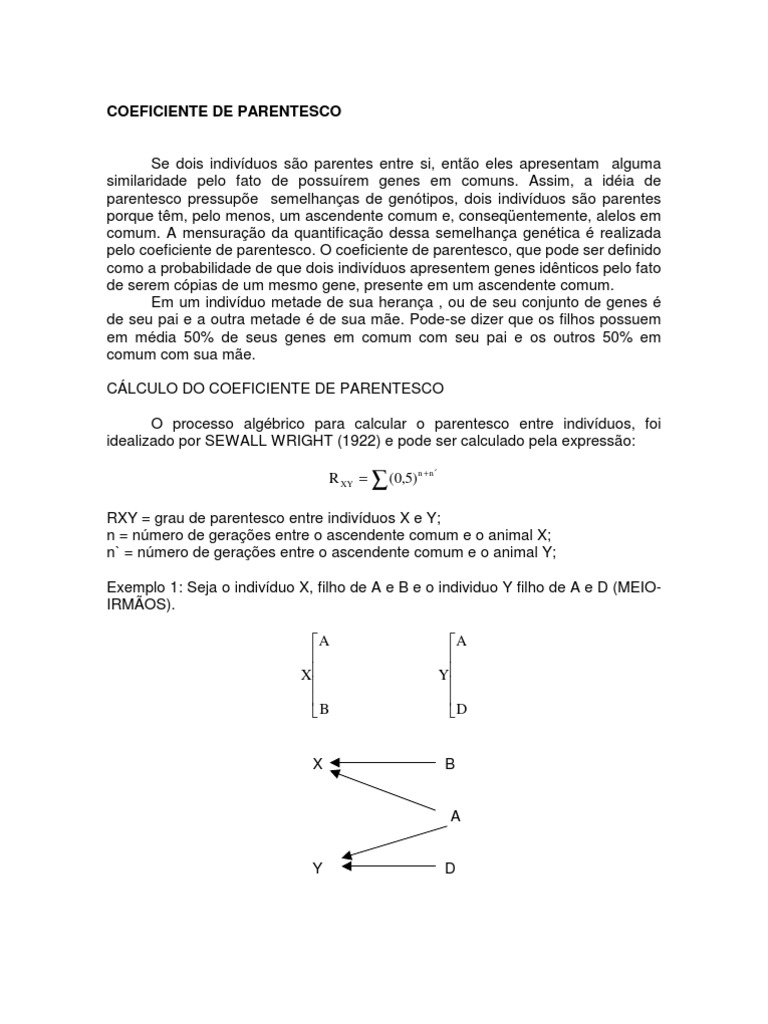 pelo coeficiente de parentesco. O coeficiente de parentesco, que pode ser definido