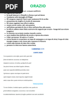 1-9. Mecenate il cui nome apre il libro delle Satire ( nominato in Sat. 1,1,1) Musa ispiratrice (Camena) di Orazio, vorrebbe che tornasse alla poesia lirica. Ma il poeta rifiuta questa sfida (rappresentata con una metafora ludica (quella del gladiatore che ha ricevuto la rudis, la bacchetta che veniva consegnata al momento del congedo). Con let cambiato il suo animo (non eadem est aetas, non mens): tempo del ritiro. 10-27 ora di lasciare la poesia per dedicarsi alla filosofia. [vv. 10-19 in latino] 10. nunc itaque et versus et cetera ludicra pono: ora dunque metto da parte (pono semplice per il composto depono, come spesso in poesia) i versi e tutti gli altri scherzi. cetera ludicra: tutti gli altri. Per il termine italiano altro il latino ha una serie di sinonimi: alter altera alterum indica una opposizione numerica, laltro dei due (contrario ambo, uterque, luno e laltro); alius (alii) indica differenza di qualit, altro, diverso (tra pi di due); ceteri sono tutti gli altri, ad indicare un gruppo opposto in massa ad un altro gruppo o individuo, mentre reliqui sono i rimanenti, un gruppo residuo esaminato nei suoi componenti. Ludicra sono gli scherzi letterari, la poesia leggera alessandrina (gr. pagnia, le catulliane nugae) contrapposta alla poesia pesante di genere epico. 11. quid verum atque decens, curo et rogo et omnis in hoc sum: mi preoccupo (curo) e ricerco e tutto il mio pensiero (omnis sum, letteralmente sono tutto) in questo, che cosa sia vero e dignitoso. Si noti la climax ascendente dei 3 verbi collegati dallet, a sottolineare la concentrazione di Orazio (omnis in hoc sum) nella ricerca filosofica, la sua cosiddetta conversione filosofica. Quid verum : interrogativa indiretta nominale ( sottinteso il verbo sit, congiuntivo presente, secondo la consecutio temporum [vedi appunti su Hor. carm. 1,11,1]). Per Orazio si tratta di dedicarsi alla filosofia etica, una ricerca della verit pratica e del decorum (a questo corrisponde decens), un comportamento conveniente, decoroso, che si addice al saggio (il gr. prpon). 2