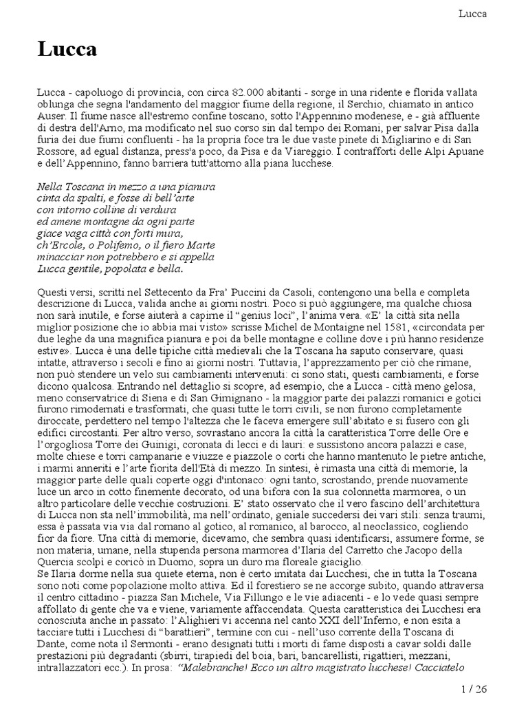 descrizione di Lucca, valida anche ai giorni nostri. Poco si pu aggiungere, ma qualche chiosa