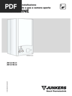 In caso di odore di gas: Chiudere il rubinetto del gas Spegnere lapparecchio Spegnere eventuali fiamme accese Aprire le finestre Non attivare interruttori elettrici Chiamare un tecnico qualificato Installazione, interventi di manutenzione Linstallazione nonch eventuali interventi sullapparecchio devono essere effettuati esclusivamente da aziende abilitate. Non consentito modificare i componenti del condotto scarico fumi. Le aperture di areazione previste in sede di installazione in pareti o porte non devono essere ostruite oppure ridotte di dimensioni (apparecchi di tipo B). Per un corretto funzionamento della caldaia necessario che vi sia un adeguato carico di acqua nel circuito di riscaldamento. Prodotti esplosivi e facilmente infiammabili Non conservare o impiegare nelle vicinanze dellapparecchio materiali infiammabili (carta, diluenti, vernici ecc.). Manutenzione In conformit a quanto richiesto dalla legislazione vigente, lutente tenuto a far eseguire regolarmente la manutenzione dellapparecchio per garantirne il funzionamento affidabile e sicuro. La manutenzione dellapparecchio va eseguita una volta allanno. Si consiglia di stipulare un contratto di manutenzione con un servizio di assistenza tecnica autorizzato JUNKERS. Per evitare fenomeni di corrosione laria comburente non deve essere contaminata da sostanze aggressive. Sono considerati fortemente corrosivi gli idrocarburi alogenati, sostanze contenenti cloro o fluoro (ad es. solventi, vernici, collanti, gas propellenti e detergenti per la casa). Utilizzare soltanto parti di ricambio originali. Pulizia del mantello Per effettuare la pulizia del mantello utilizzare un panno umido e non impiegare sostanze chimiche aggressive.