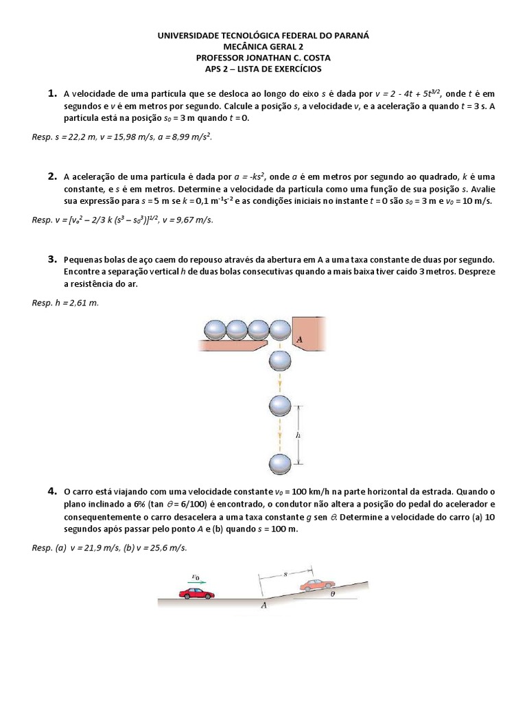 Pequenas bolas de ao caem do repouso atravs da abertura em A a uma taxa constante de duas por segundo. Encontre a separao vertical h de duas bolas consecutivas quando a mais baixa tiver cado 3 metros. Despreze a resistncia do ar.
