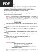 8. Nostratico e Indo-mediterraneo Alcune di queste somiglianze e contatti si spingono cos lontano che legittimo parlare di resti di una antica unit anche estraitaliana. Anche se questo non interessa direttamente il linguaggio dItalia, pure consigliabile tenere presenti alcune distinzioni terminologiche. Ci sono temi come AUSA che hanno corrispondenze estesissime dal mondo basco allIrlanda allItalia al vicino oriente, allArabia, e sono compresi nel termine generalissimo di nostratico27 . Ci sono quelli che gravitano piuttosto verso una fascia settentrionale dai Pirenei alla regione alpina, dalla Balcania fino al Caucaso e sono detti paleoeuropei p. es. KUK ( 7). Ci sono quelli che gravitano piuttosto verso il mezzogiorno e le coste africane, spingendosi addirittura fino allIndia: sono detti indo-mediterranei. Tale, secondo V. Pisani28 , il significato della diffusione del sistema numerale vigesimale; tale il valore di certe corrispondenze greco-indiane, come gr. erbinthos cece, contro indiano aravinda. 9. Paleo-europeo Di maggiore interesse, dal punto di vista italiano, il caso opposto, per il quale, allinterno dello strato mediterraneo e delle sue testimonianze italiane, si riscontrano differenze. Fra la tendenza di B. Gerola, aliena dal riconoscere questa variet, e quella di M. Durante29 incline a esaltarScritti minori, cit., II, pp. 29-30. Pisani, Scritti in onore di Alfredo Trombetti, Milano 1938, pp. 199-213. 29 Durante, Annali dellIstituto orientale di Napoli. Sezione linguistica, 3, 1961, pp. 59-77.