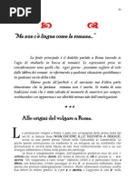 b) inizio di una tradizione linguistica continuata dalla fondazione di Roma in poi 16-40; e) involuzione e frantumazione di questo primo patrimonio nel V sec. a.C. 41-50; d) ascesa, anche estraitaliana, verso la unit linguistica dal IV sec. a.C. al II d.C. 51-100; e) involuzione e frantumazione durante lalto medio evo 101-125; f) nuova ascesa verso la unificazione, questa volta limitata allItalia 126-250. Questo libro non intende affermare, in tanto mutare di situazioni, una preminenza di interesse per le forze centrifughe o le centripete; della analisi strutturale o di quella storica. Realisticamente, concentra la sua attenzione su quanto di chiaro e di stimolante i documenti offrono per il lettore, curioso di quanto i nostri progenitori, in fatto di lingua, hanno sperimentato realizzato e sofferto.