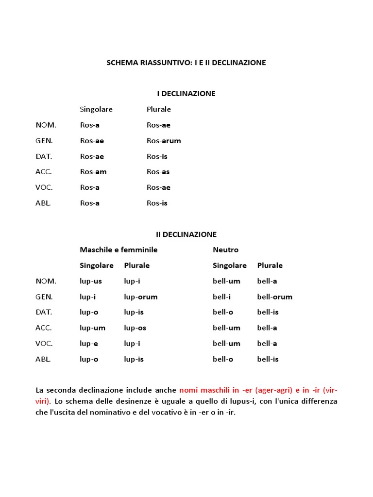 SCHEMA RIASSUNTIVO: I E II DECLINAZIONE