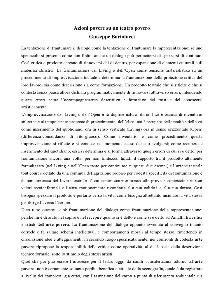 Azioni povere su un teatro povero Giuseppe Bartolucci