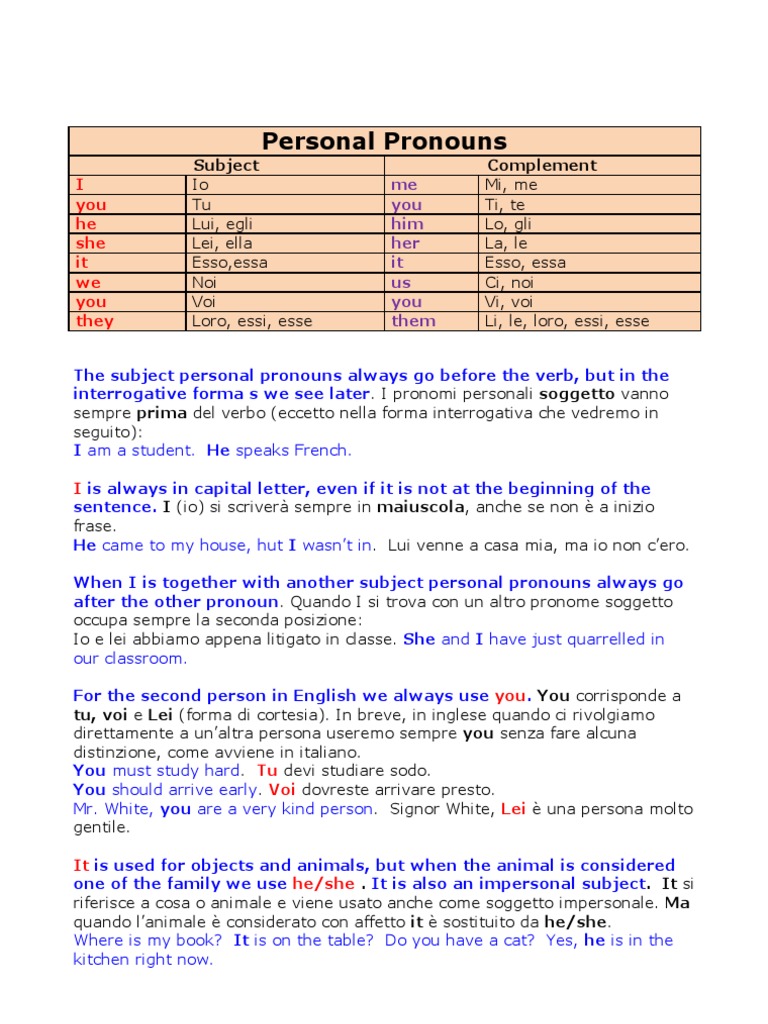interrogative forma s we see later. I pronomi personali soggetto vanno