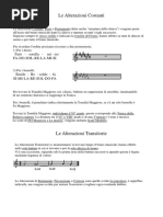 rispettivamente utilizzati per contrassegnare un innalzamento di 1 o 2 semitoni cromatici rispetto al suono naturale; delle alterazioni discendenti fanno parte il bemolle ( ) e il doppio bemolle ( ) che sono rispettivamente utilizzati per contrassegnare un abbassamento di 1 o 2 semitoni cromatici rispetto al suono naturale; il bequadro ( ), a volte anche doppio ( ), un'alterazione utilizzata per annullare l'effetto di quelle precedenti. Le alterazioni sono divisibili in altre due categorie, a seconda della durata del loro effetto: Alterazioni costanti: vengono posposte subito alla chiave; il loro effetto perdura per tutto il brano, salvo nuova indicazione (cambiamento di tonalit) ed valido per ogni ottava. Il loro numero permette di stabilire la tonalit del brano. Alterazioni transitorie o momentanee: vengono anteposte alla nota. Il loro effetto ha validit dal punto in cui vengono poste fino alla fine della battuta per tutte le note di uguale altezza, se non compare un bequadro prima. L'alterazione si prolunga oltre la battuta, se l'ultima nota della battuta viene alterata e legata (con una legatura di valore) alla prima nota (della stessa altezza) della battuta successiva, ma decade immediatamente dopo la prima nota. Le alterazioni di precauzione o di cortesia vengono scritte generalmente tra parentesi: non hanno effetto reale, ma servono a ricordare all'esecutore la giusta altezza della nota nei casi ambigui o difficili. Sono utili in caso di frequenti cambi tra nota alterata e naturale, in prossimit di cambi di tonalit, in situazioni armoniche ambigue o complesse, in caso di notevole distanza tra la prima nota alterata e la successiva all'interno della stessa battuta. Nella notazione contemporanea, dove spesso le stanghette di battuta non esistono o hanno un significato diverso da quello tradizionale, l'alterazione momentanea si riferisce in linea di massima solo alla nota immediatamente successiva o al gruppo di note uguali ribattute. Si usa inoltre annotare le altezze microtonali (quarti e sesti di tono, note calanti o crescenti) con segni derivati graficamente da quelli tradizionali (come ad esempio il monesis o il triesis) o applicando ai segni tradizionali delle frecce rivolte verso l'alto o verso il basso, ad indicare la direzione dello spostamento microtonale. La legenda in questi casi (assieme all'intuito) uno strumento molto utile per la decifrazione di questi segni.