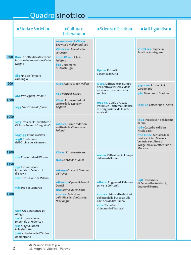 1152 Incoronazione imperiale di Federico I di Svevia 1162 Distruzione di Milano 1183 Pace di Costanza 1160-90 Opere di Chrtien de Troyes 1180-1210 Opere di Arnaut Daniel 1190 Ritmo laurenziano 1200 ca. Redazione definitiva del Cantare dei Nibelunghi 1209 Crociata contro gli Albigesi 1212 Incoronazione imperiale di Federico II 1215 Magna Charta in Inghilterra 1216 Istituzione dellOrdine domenicano 1180 ca. Ruggero di Palermo scrive la Chirurgia 1200 ca. Prime attestazioni delluso della bussola sulle navi del Mediterraneo 1202 Liber abbaci di Leonardo Fibonacci 1178 Deposizione di Benedetto Antelami, duomo di Parma