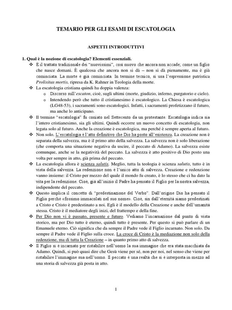 Escatologia - Temario e Risposte