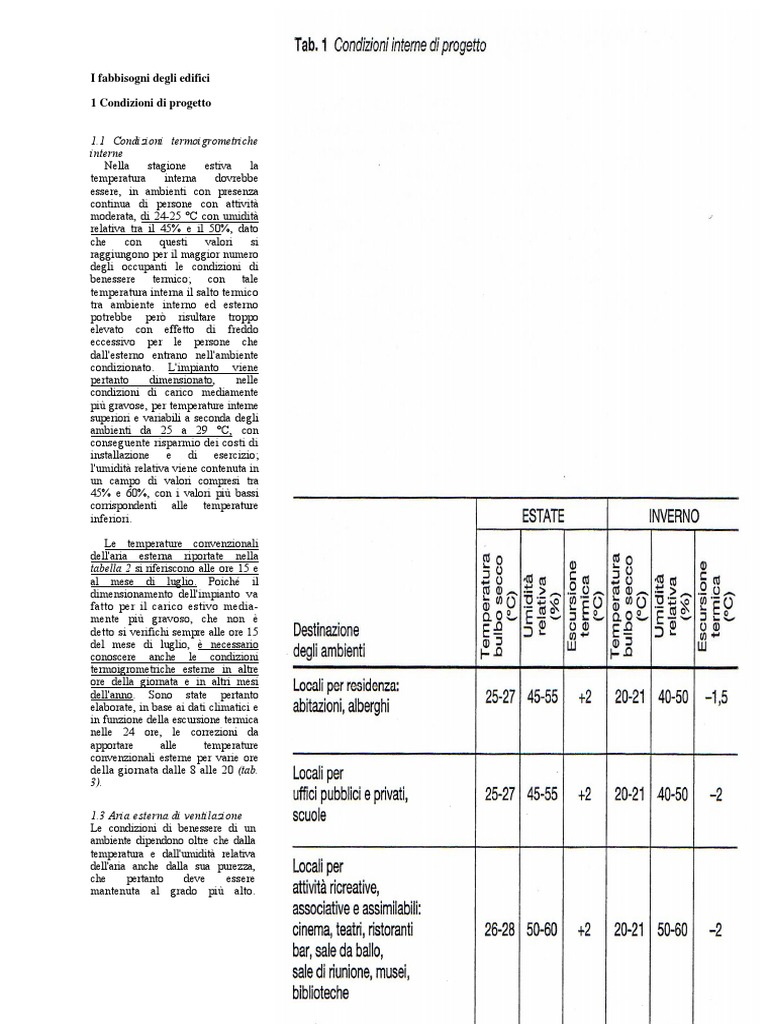 I fabbisogni degli edifici 1 Condizioni di progetto 1.