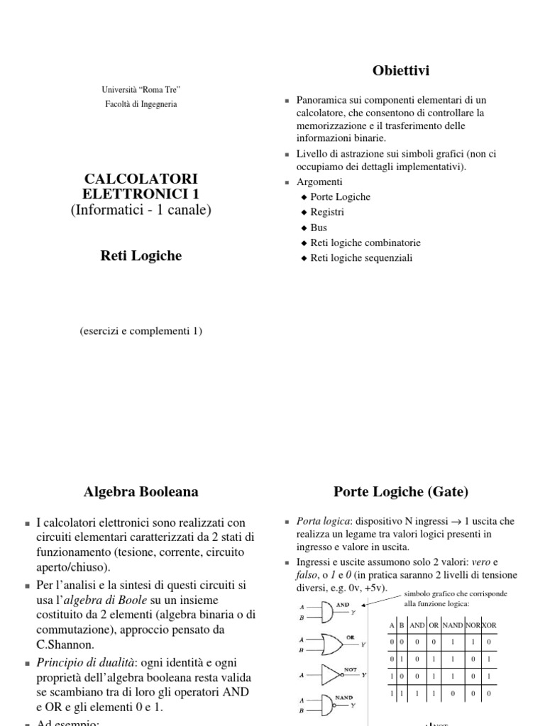 CALCOLATORI ELETTRONICI 1 (Informatici - 1 canale) Reti Logiche