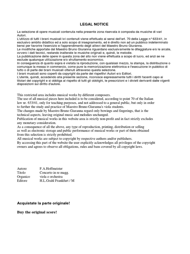Le modifiche apportate dal Maestro Bruno Giuranna riguardano esclusivamente le diteggiature e/o le arcate,