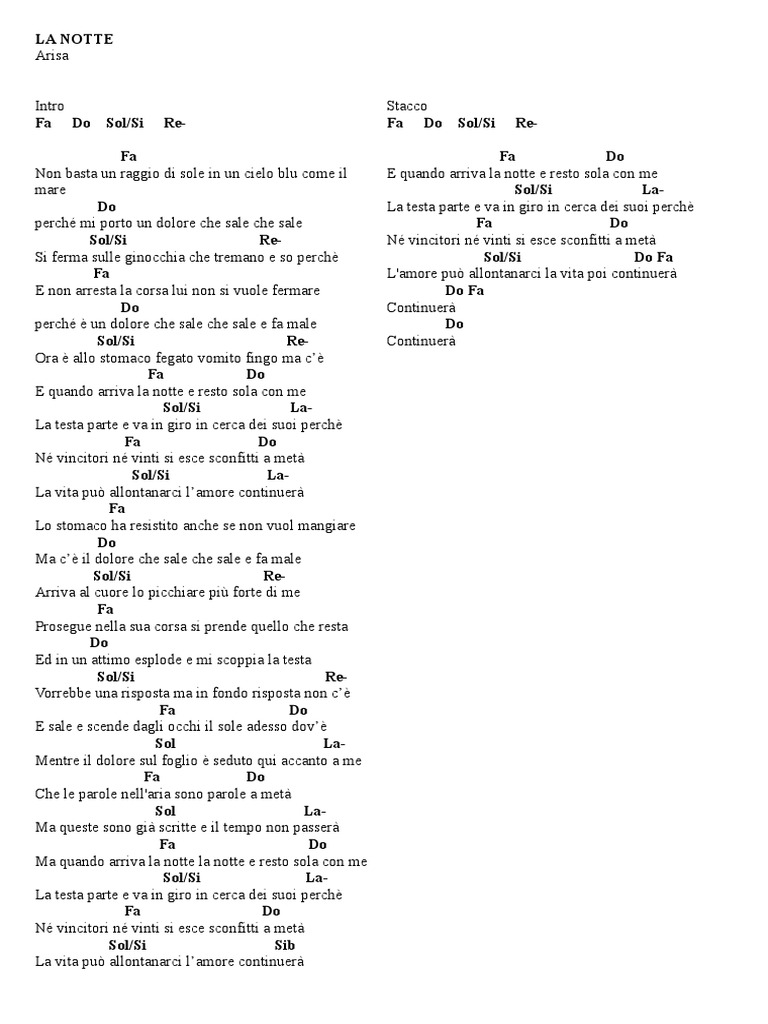 LA NOTTE Arisa Intro Fa Do Stacco Fa Do