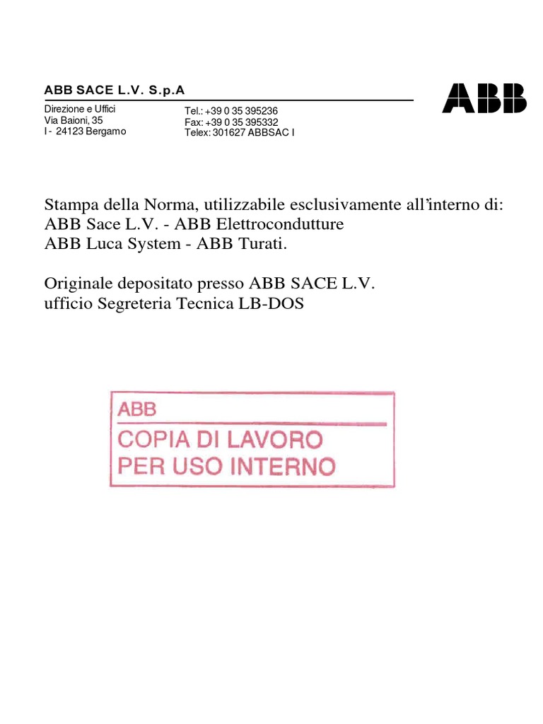 Stampa della Norma, utilizzabile esclusivamente allinterno di: ABB Sace L.V. - ABB Elettrocondutture ABB Luca System - ABB Turati. Originale depositato presso ABB SACE L.V. ufficio Segreteria Tecnica LB-DOS