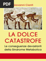 SINDROME METABOLICA E OLTRE Linsieme dei disastri, spesso anche molto diversi tra loro che derivano dalla malnutrizione abbraccia tutte le malattie conosciute, metaboliche, neurologiche, ormonali dal foruncolo sul naso fino al tumore. Molte di queste malattie hanno in comune la causa scatenante cio lincapacit del nostro organismo di tollerare grandi quantit di zuccheri che si evidenzia nella resistenza allinsulina. La Sindrome Metabolica costituita appunto da una vasta costellazione di malattie molto spesso diverse tra loro che hanno in comune la resistenza allinsulina. La resistenza allinsulina una condizione che deriva da una cronica ed eccessiva presenza nel sangue di glucosio (la glicemia) e insulina. Molto semplicemente accade questo: si tratti di zuccheri complessi come gli amidi o semplici come il fruttosio dopo una digestione pi o meno lunga o complicata il carboidrato passa nel sangue sempre e solo come zucchero semplice sotto forma di glucosio. Per questo la qualit dello zucchero non molto importante e neppure la rapidit con la quale arriva nel sangue, il suo indice glicemico. Quello che conta veramente la sua quantit, il carico glicemico. Una volta nel sangue lo zucchero viene raccolto da un ormone, linsulina appunto che lo deve trasportare allinterno delle cellule dove sar utilizzato per produrre energia. Poich siamo animali carnivori frugivori per i quali per forza di cose gli zuccheri erano limitati ci siamo evoluti cercando di risparmiarli per mantenerne costante il livello nel sangue e non avere cali di energia. Zuccheri sempre e comunque pochi alla volta questa la parola chiave. E accaduto con lagricoltura che dalla pancia della mamma fino alla morte si venisse travolti, bombardati da un eccesso di zuccheri molti pi di quanti ne servissero realmente. Questo ha portato le cellule dei tessuti a rifiutarli impedendo allinsulina di fare il suo lavoro. Per qu esto si parla di resistenza allinsulina, lormone bussa alla porta della cellula col suo dolce carico e la porta non si apre perch la cellula gi satura di zucchero, altro non ne serve. E cos il carboidrato in eccesso inizia una catena devastante di eventi. La prima risposta dellorganismo una eccessiva produzione di insulina che spazza via lo zucchero dal sangue. Si passa da un eccesso , liperiglicemia ad una carenza, lipoglicemia. Va cos persa la regolare stabilt che si evidenzia con un livello latalente dellenergia durante la giornata. Una volta che lo zucchero spazzato via dal sangue in parte viene dirottato nel fegato dove si trasforma in colesterolo e trigliceridi che successivamente vengono depositati nelle cellule di grasso, gli adipociti e nei vasi sanguigni determinando arteriosclerosi ad esempio. Unaltra parte di questi zuccheri in eccesso crea legami irreversibili con tutti i tessuti del corpo pelle, ghiandole, neuroni formando nel tempo dei composti irreversibili, gli Evidenza delle classiche montagne russe AGEs una matassa collosa che fa della glicemia dovute alla dieta tradizionale perdere elasticit al tessuto e gli a confronto con la stabilit glicemica che si impedisce di svolgere la sua ottiene con Evo Diet. funzione. Cos la pelle avvizzisce, il cristallino dellocchio si opacizza fino