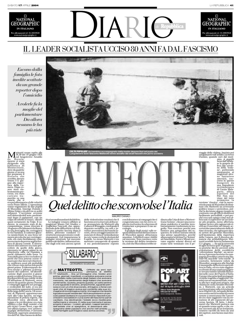 Le immagini di questo Diario (in copertina, a fianco e qui sotto) sono prese dal reportage che la vedova di Matteotti commission al famoso fotoreporter Adolfo Porry Pastorel. Lintera sequenza viene ricomposta solo oggi per la mostra fiorentina Giacomo Matteotti, storia e memoria