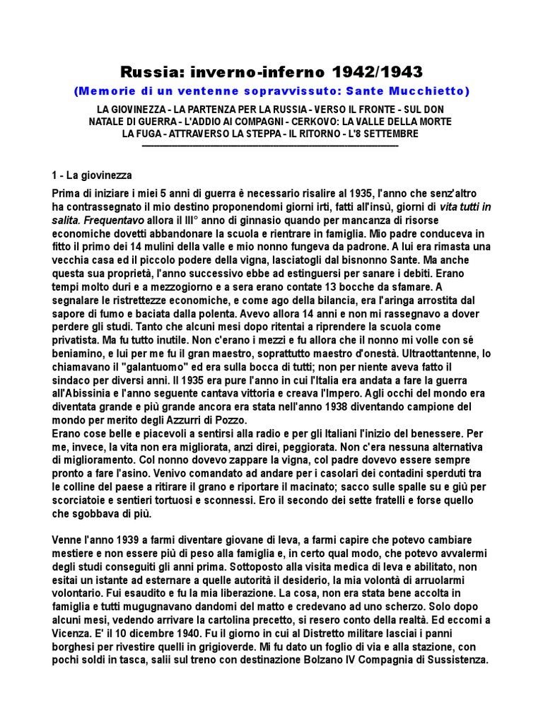 Prima di iniziare i miei 5 anni di guerra necessario risalire al 1935, l'anno che senz'altro