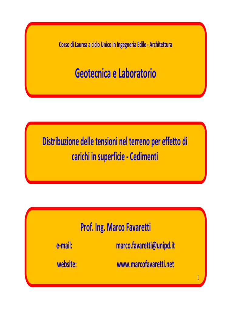 carichi in superficie Cedimenti carichiinsuperficie Cedimenti
